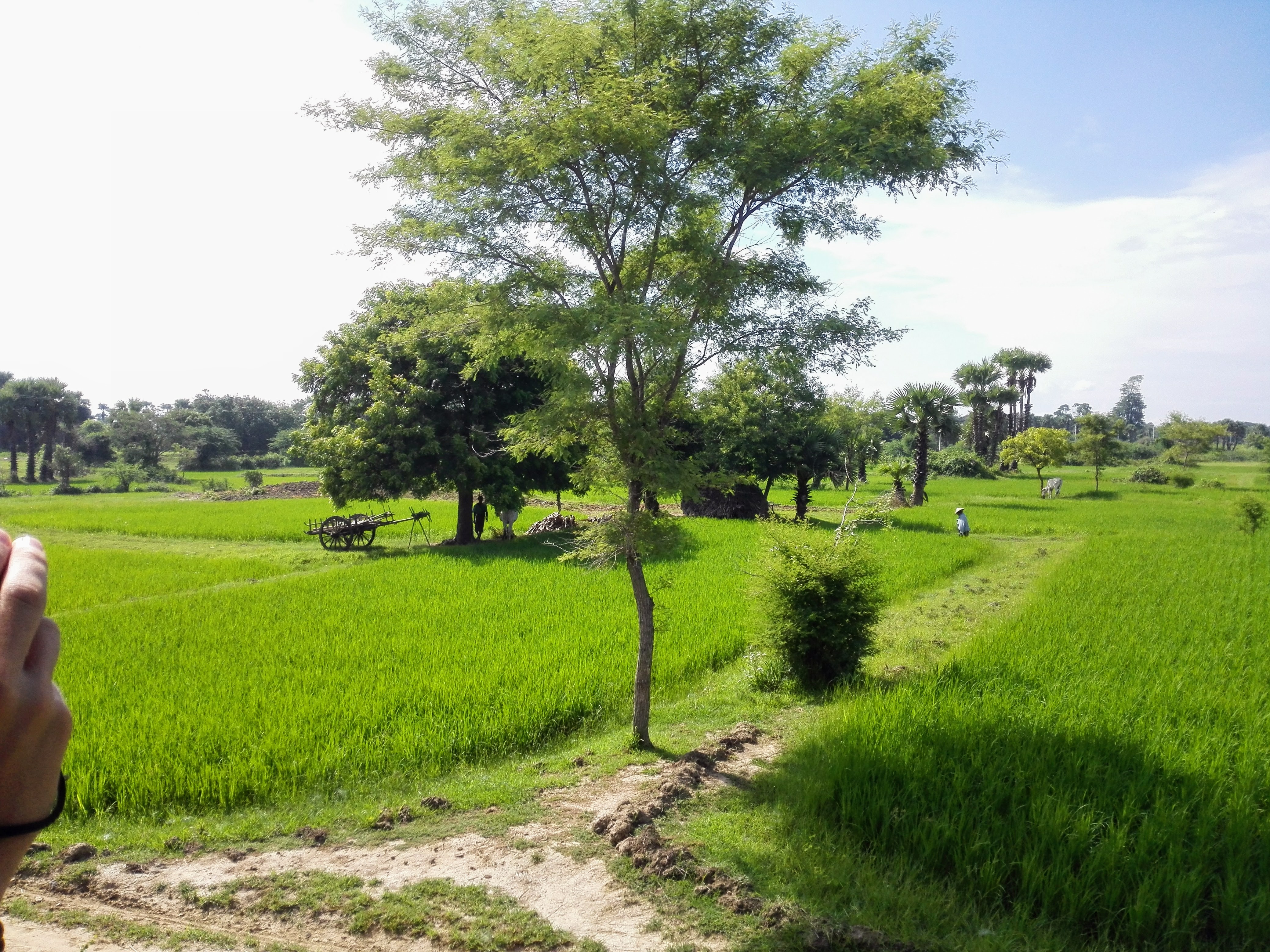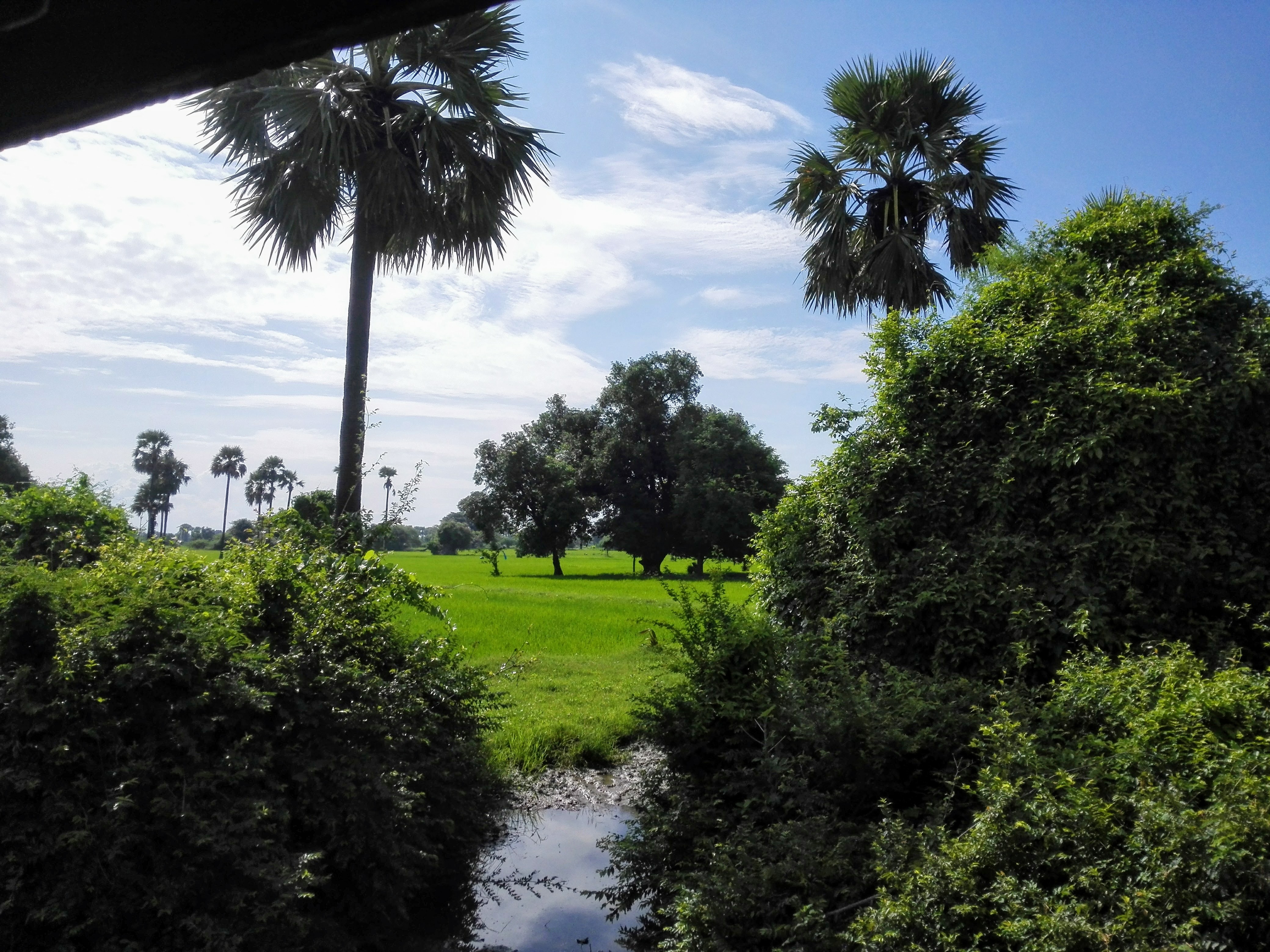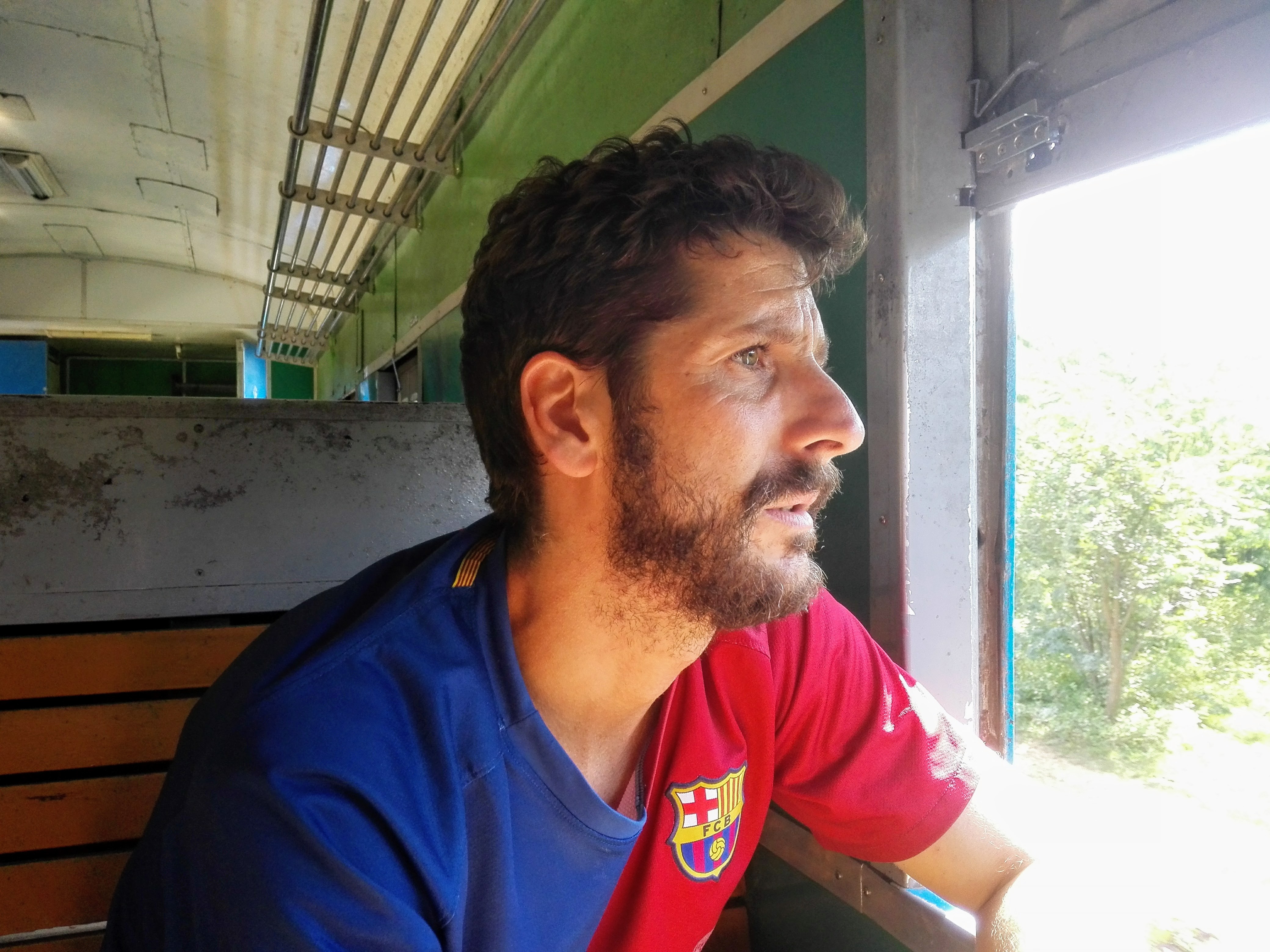 The train was almost empty, the doors were nonexistent, and all the way passed between villages and forests of palm trees with carts pulled by oxen. We spent the trip leaning out the door appreciating such beautiful landscape, pure calm and tranquility.