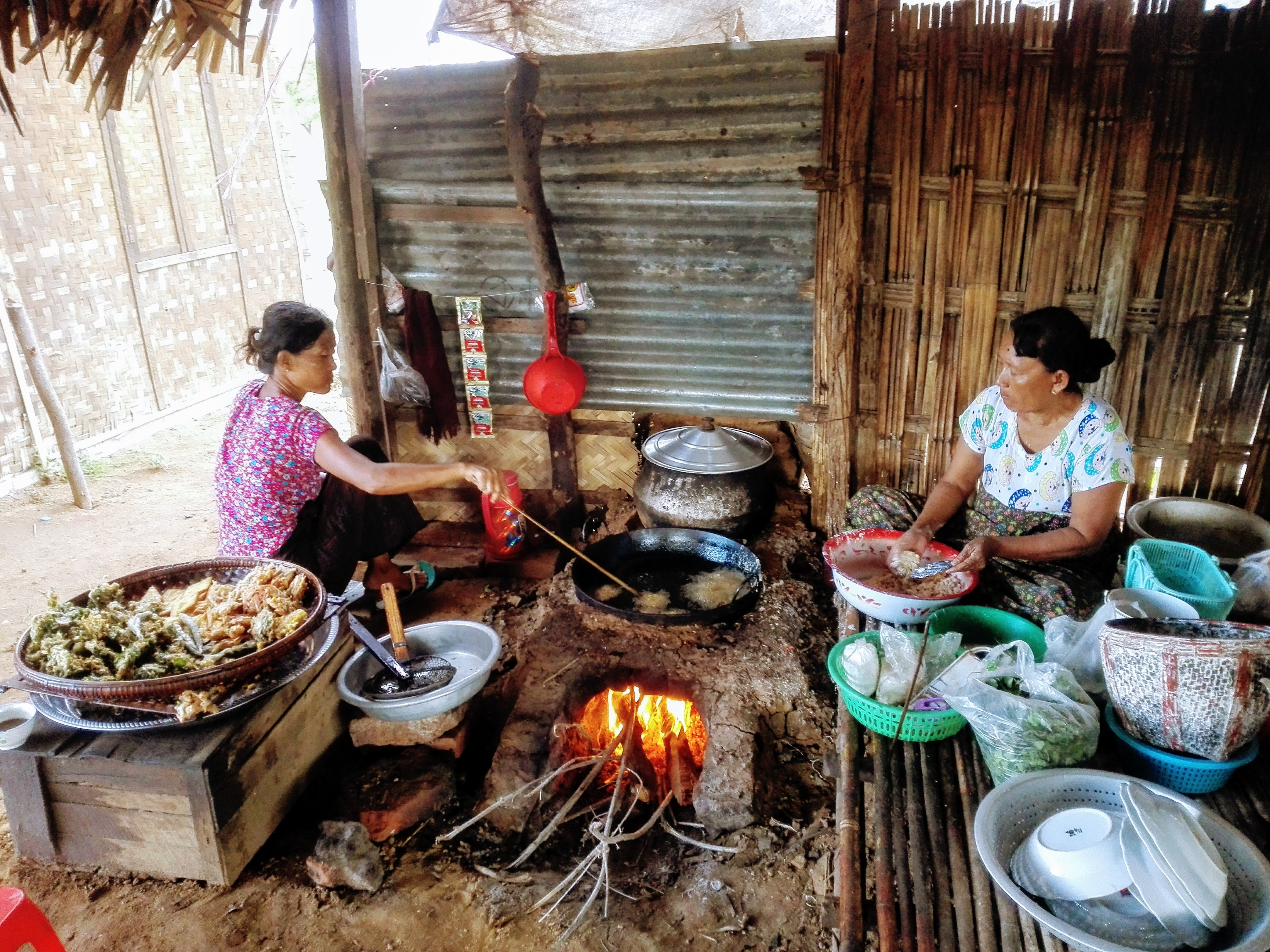Leaving the Sulamani temple, we found a cabin where they were frying pasta and preparing tea with milk. They prepared it on a wood fire in a low kitchen prepared with clay, very picturesque, all natural and all built with their own hands. There was also a table of young locals enjoying the fried delights. We found it very picturesque and endearing, and we could not help but sit down to be part of it.
