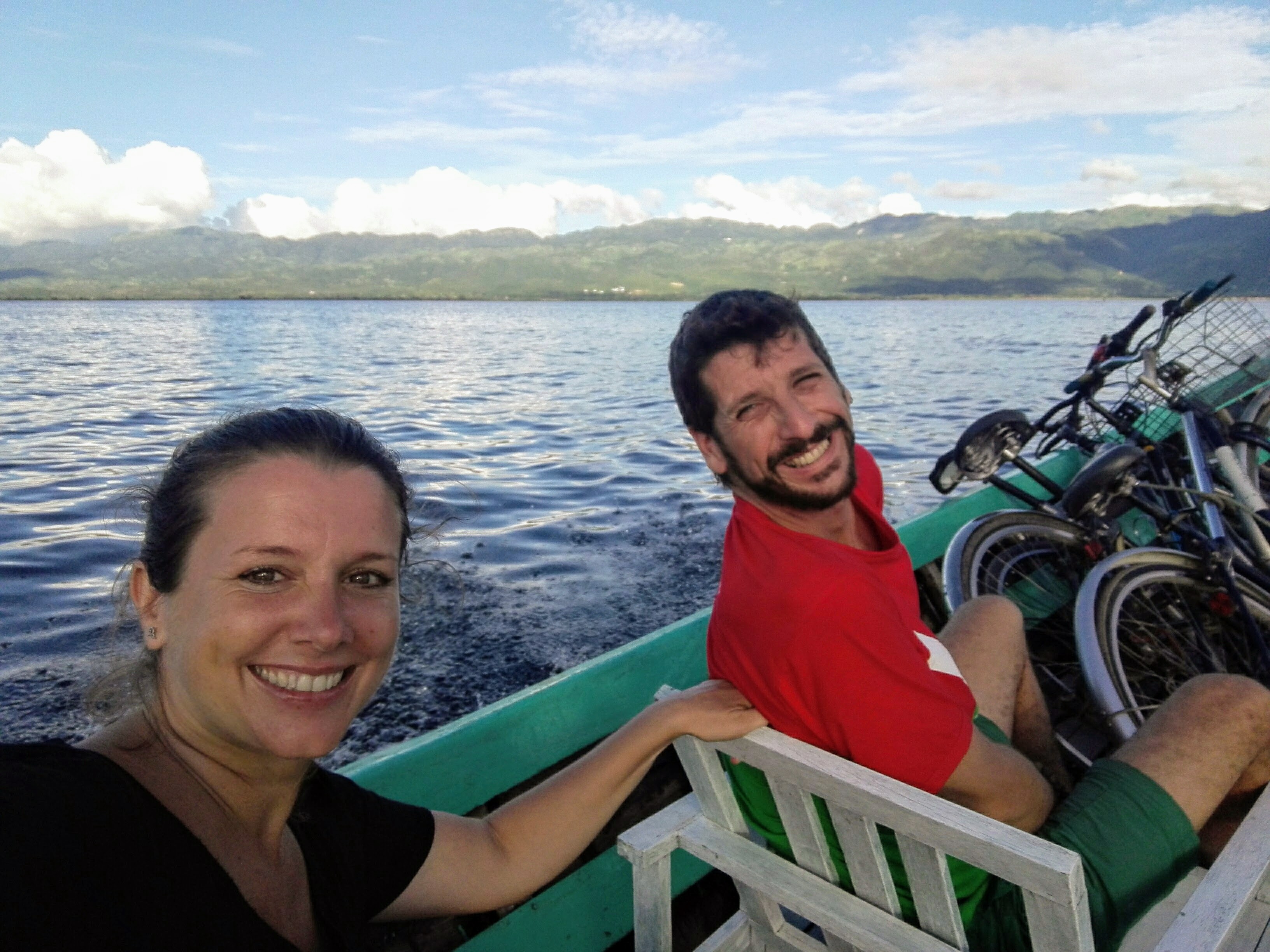 On the way back he served us a delicious tofu dish and we paid him 1 dollar each. He also organized us to cross the lake in a boat with bikes and all for $ 4 … great!